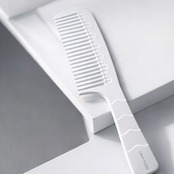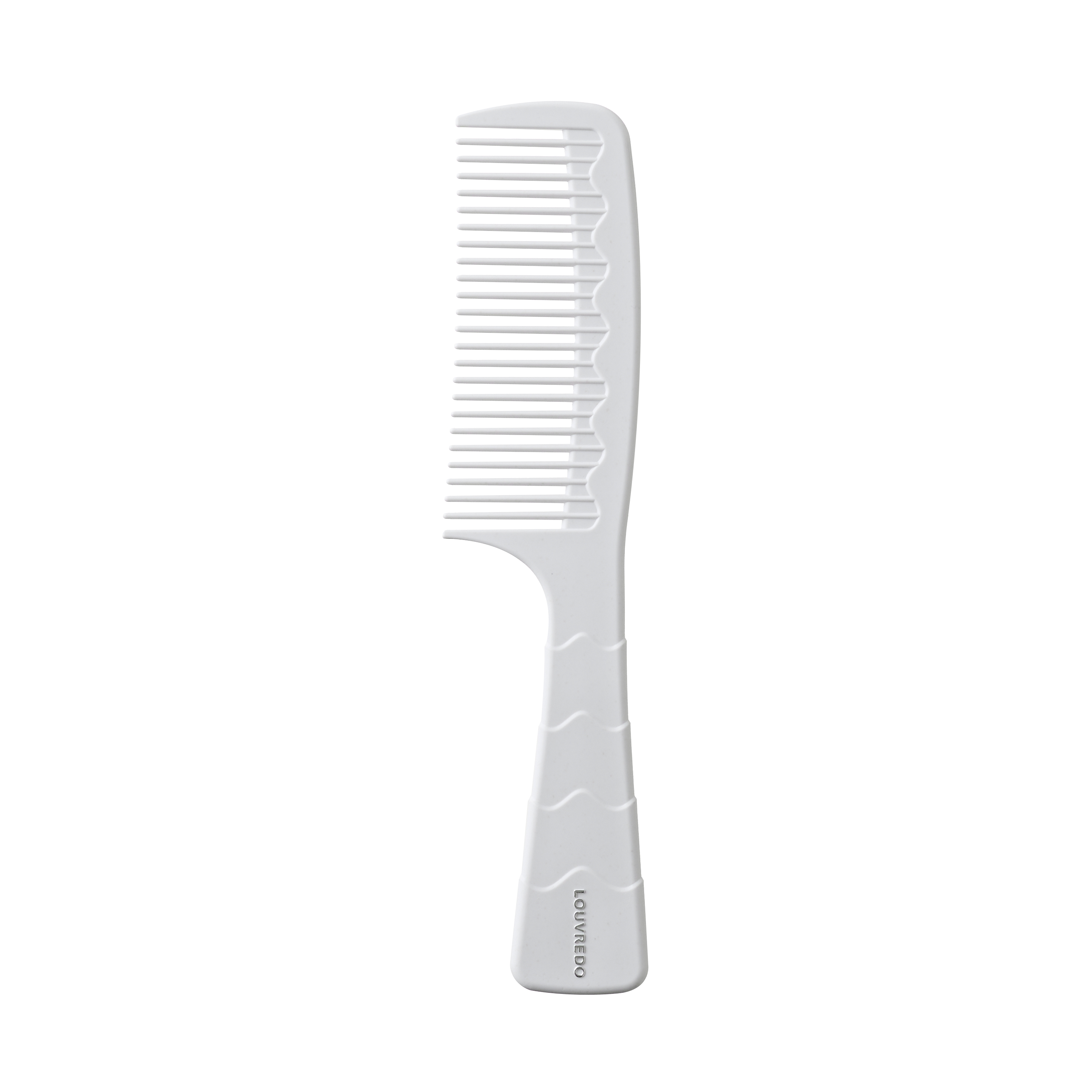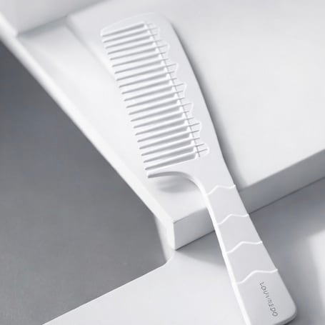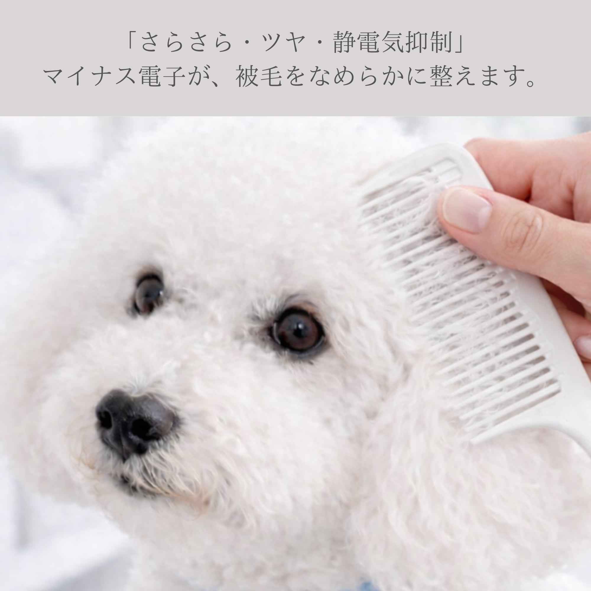 洗練されたホワイトカラーのワイド設計で、広がる被毛を優しくキャッチ。摩擦や静電気を抑えながら、毛先まで指通りなめらかに整えます。