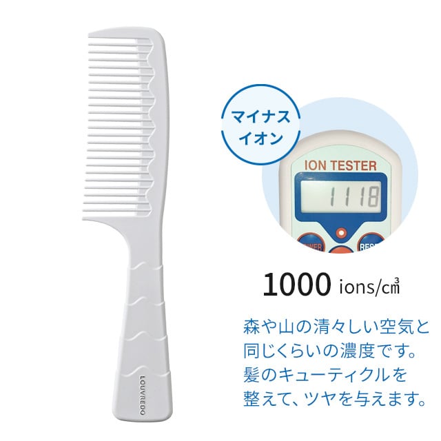 コームの手入れは、中性洗剤を薄く溶かしたぬるま湯で振り洗いし、充分すすいだ後、水気をきり乾いた布で拭いてください。