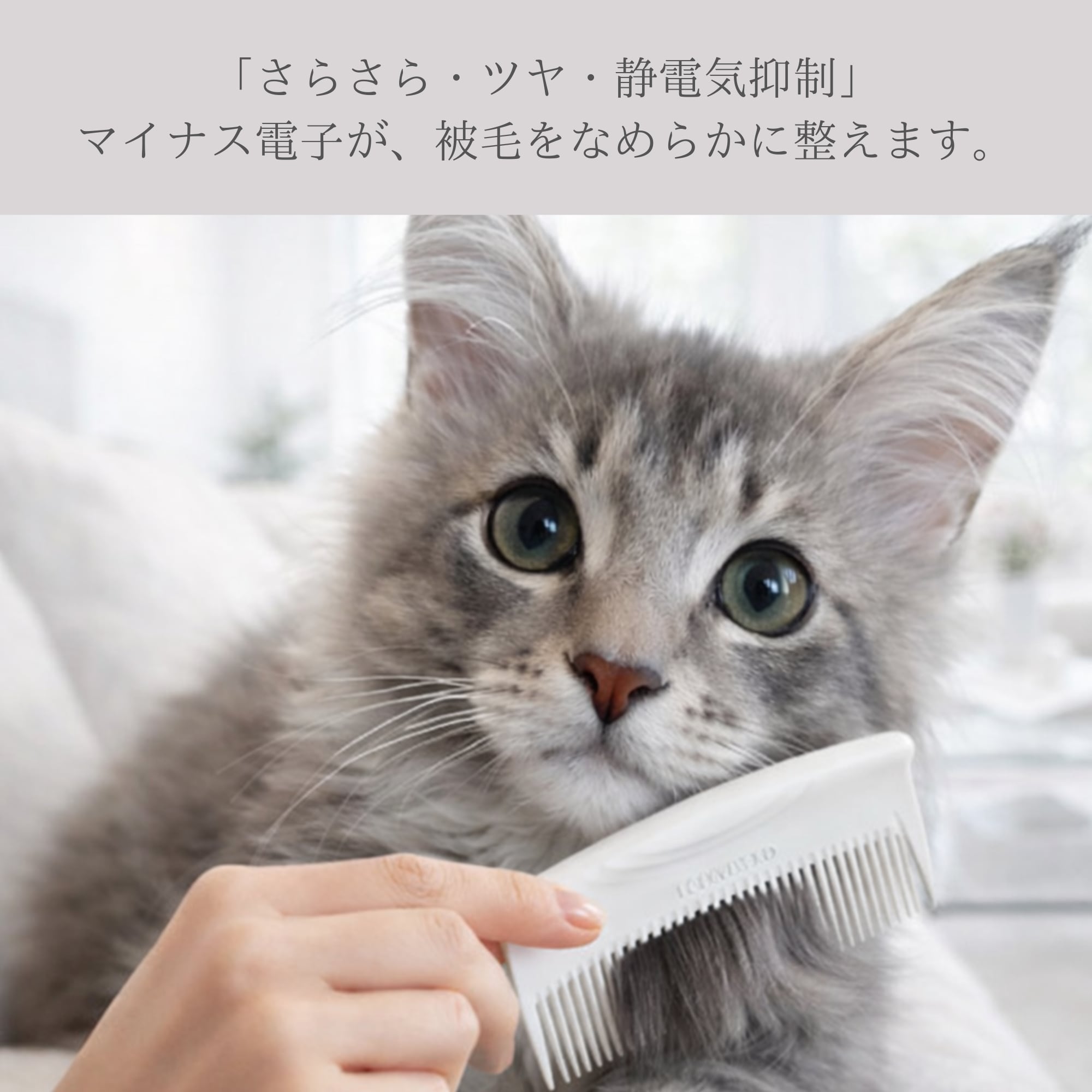 手のひらに収まるミニサイズながら、気になる摩擦や静電気を抑え、細い被毛も指通りなめらかに整えます。