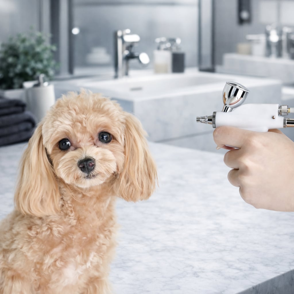 付属品のエアーブラシは、涙やけや尿や便での被毛の汚れをケアするのにとても便利なアイテムです。